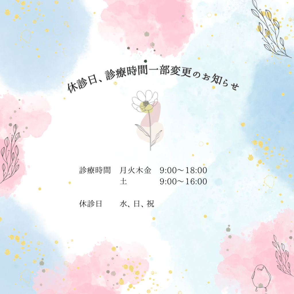 そして、当院は1月から休診日と診療時間の一部を変更して診療致します。