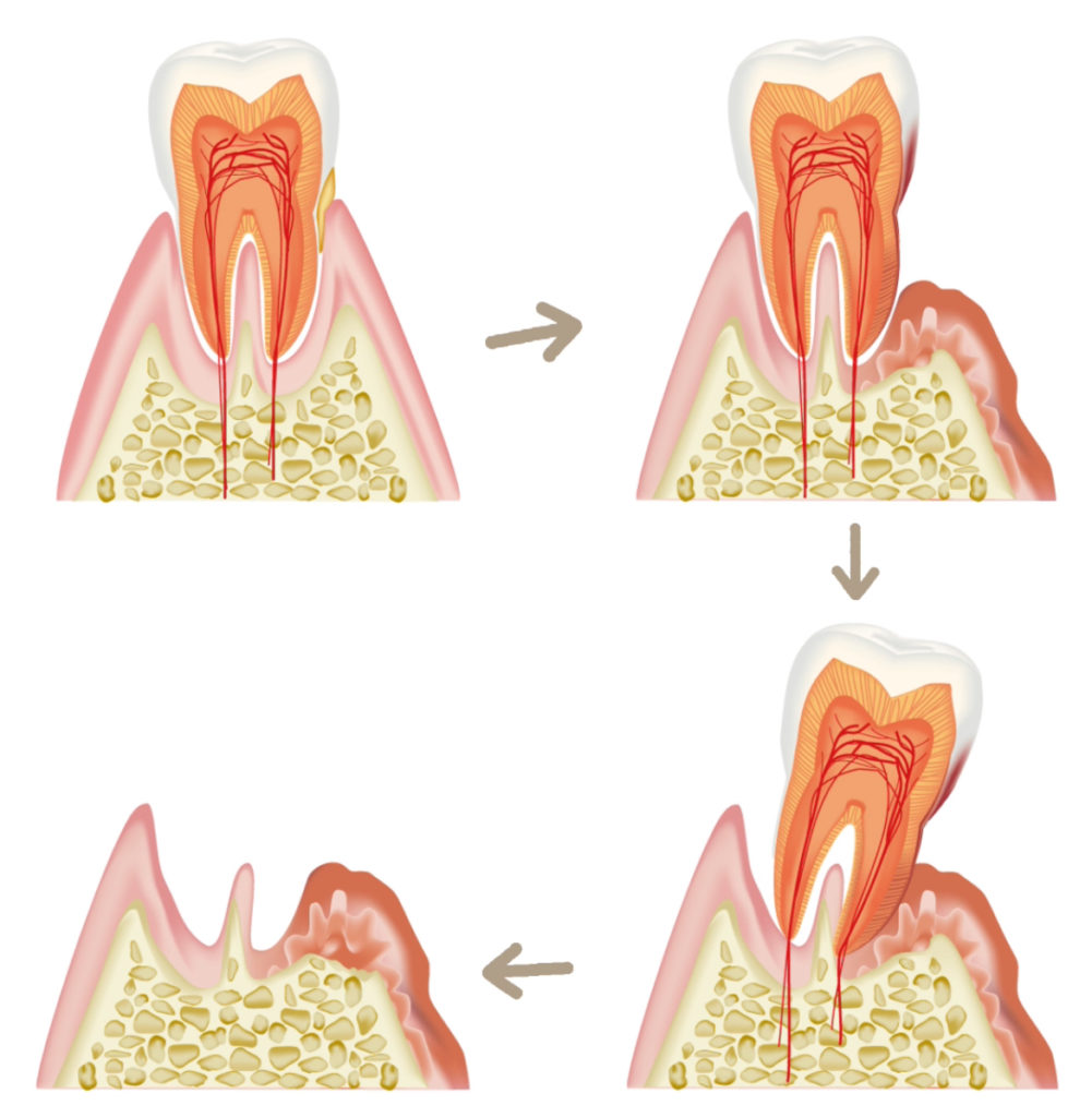 歯周病は初期段階では痛みがほとんどなく、気づかないうちに進行するのが特徴です。